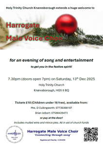 Join us for an evening of song at Holy Trinity Church in Knaresborough on 13th December. Details on the poster.