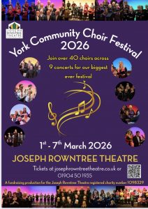 Straight after out first concert of the year at Boston Spa Methodist on 27th February, we will be appearing at the York Community Choir Festival on the 1st March at the Joseph Rowntree Theatre. We’re honoured to be helping to kick off this week of concerts, please check the poster for a list of choirs that will be performing and on which night.